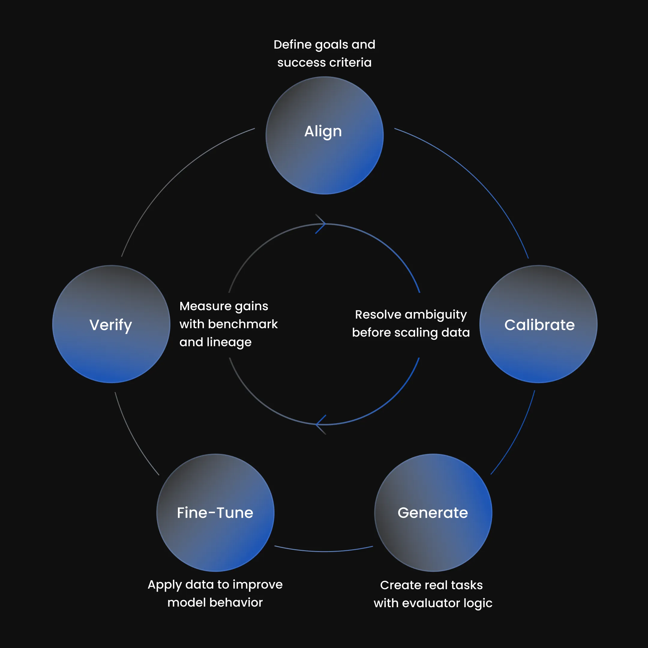 Get data built for post-training improvement, not just evaluation. From SWE-Bench-style issue sets to multimodal UI gyms, our data teaches your model to reason, use tools, and adapt across domains.